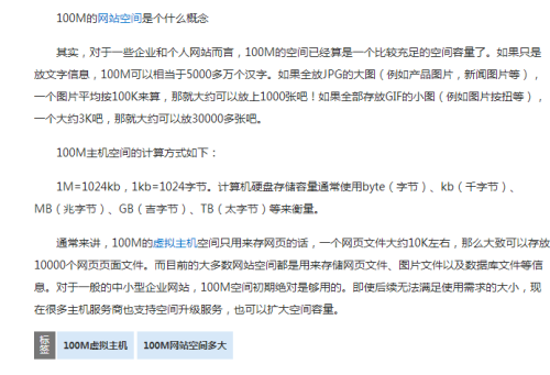 舉個簡單的例子,如圖你在某篇文章中添加了“100M虛擬主機”和“100M網站空間多大”兩個TAG標簽,就可以通過點擊這兩個標簽來查看更多相關內容的其他日志。這樣更容易增加網站內容的用戶粘度,讓用戶停留在你網站的時候更長,提高用戶體驗也降低了整體的網站跳出率。