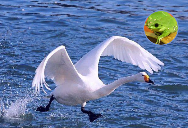 莫笑蛤蟆貪紅顏,蛙以性命護(hù)周全,它日天鵝折雙翼,半世輪回?fù)Q仙丹,丹融折翼再為翅,一身白羽上青天地方圓不見蟾。 -------------...